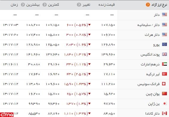 قیمت اغلب ارزها در بازار نیز امروز کاهشی اندک را تجربه کرد. یورو با کاهش 30 تومانی، 10 هزار و 670 تومان معامله می شود و پوند انگلیس نیز با 184 تومان به قیمت 13 هزار و 996 تومان معامله شد.