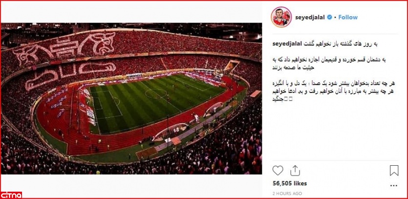 به گزارش سرویس وبگردی سیتنا، مدافع محبوب پرسپولیسیها که امروز تصویر 5 بازیکن تیمش را در صفحه اینستاگرام خود منتشر کرد تا واکنشی غیر مستقیم به دعوت نشدن این 5 نفر به تیم ملی داشته باشد، پستی جدید در صفحه اینستاگرامش منتشر کرد.