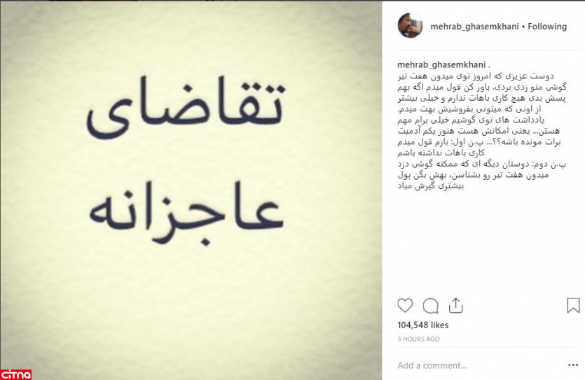 پست مهراب قاسمخانی و تقاضای عاجزانه از دزد گوشیاش