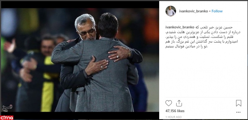به گزارش سرویس وبگردی سیتنا، حسین فرکی مربی اسبق تیم ملی، امروز نوه خردسالش را از دست داد. اتفاق تلخی که باعث شد تا برانکو ایوانکویچ که به همراه فرکی در تیم ملی حضور داشت، به این همکار قدیمی اش تسلیت بگوید.