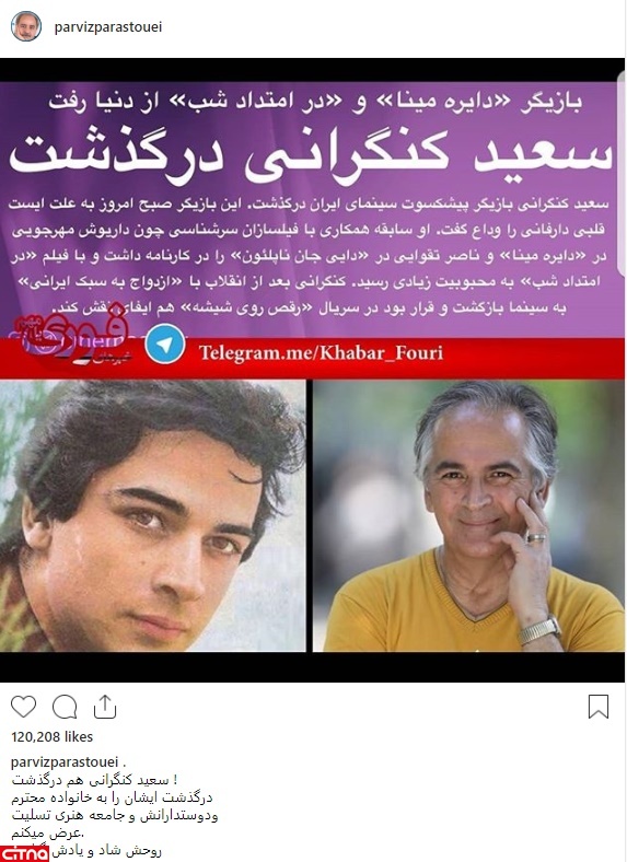 در این رابطه پرویز پرستویی در اینستاگرام نوشت: «سعید کنگرانی هم درگذشت ! درگذشت ایشان را به خانواده محترم و دوستدارانش و جامعه هنری تسلیت عرض میکنم.»