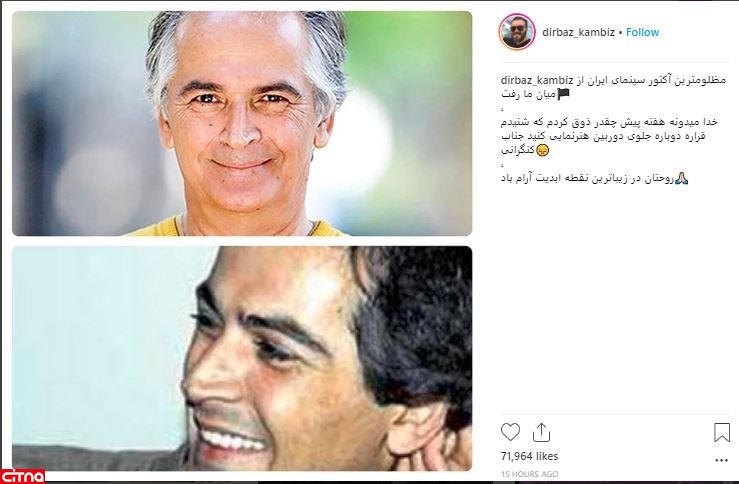 کامبیز دیرباز هم کنگرانی را مظلومترین آکتور سینمای ایران توصیف کرد و نوشت: «مظلومترین آکتور سینمای ایران از میان ما رفت، خدا میدونه هفته پیش چقدر ذوق کردم که شنیدم قراره دوباره جلوی دوربین هنرنمایی کنید جناب کنگرانی. روحتان در زیباترین نقطه ابدیت آرام باد.»