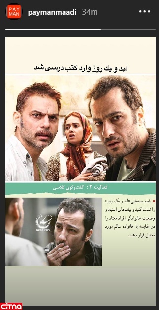 به گزارش سرویس وبگردی سیتنا، پیمان معادی تصویری از فیلم «ابد و یک روز» ساخته سعید روستایی را در اینستاگرام منتشر کرد و از اضافه شدن این فیلم به کتاب های درسی مدارس خبر داد.