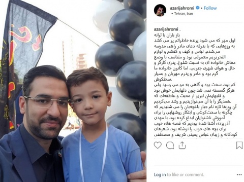 به گزارش سیتنا، مهندس آذری جهرمی همزمان با روز اول مهر و بازگشایی مدارس، با انتشار عکسی در کنار یکی از فرزندان محصلش، نوشت: