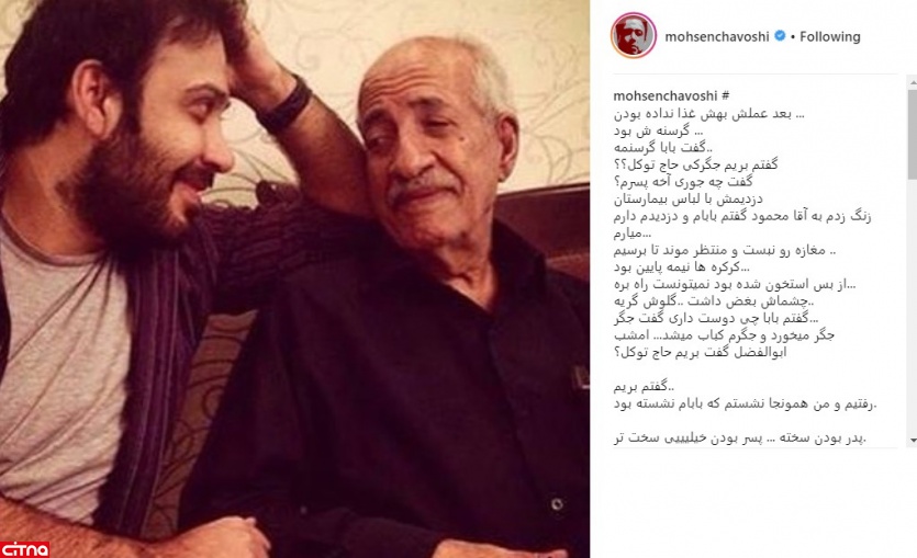 محسن چاوشی با بیان خاطره ای از پدرش زمانیکه دچار کسالت بود، ضمن ابراز دلتنگی، به دنبال کنندگانش توصیه کرد که قدر پدرانشان را بدانند.