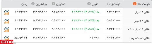 در دومین روز پاییز هر گرم طلای 18 عیار با افزایش قیمت به ۴۴۰ هزار تومان رسید و همچنین هر قطعه سکه تمام بهار آزادی امامی به قیمت ۴میلیون و ۷۵۱ هزار تومان معامله شد.