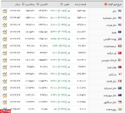 بررسیها نشان میدهد قیمت سایر ارزها نظیر درهم امارات،لیر ترکیه، یوان چین، دلار کانادا و استرالیا، روپیه هند و ... نیز افزایش داشته است.