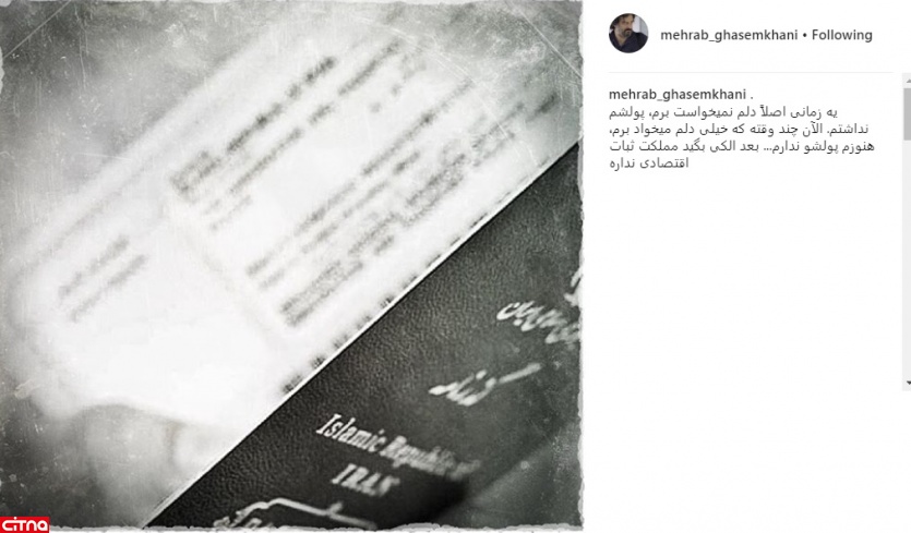 به گزارش سرویس وبگردی سیتنا، مهراب قاسم خانی با انتشار تصویر یک گذرنامه در اینستاگرام، درباره ثبات اقتصادی در ایران نوشت: