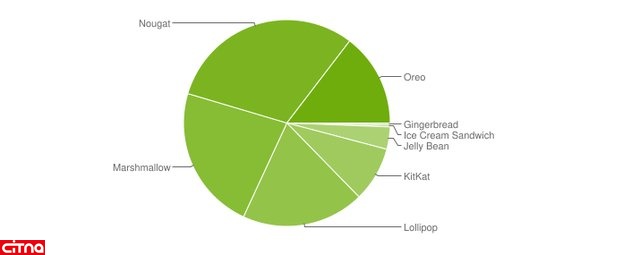 نمودار زیر به وضوح نشاندهنده میزان و درصد استقبال کاربران از نسخه های مختلف اندروید است: