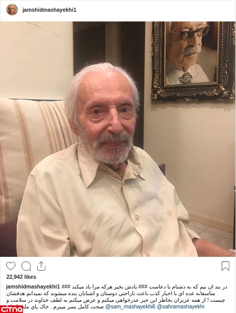 جمشید مشایخی با انتشار تصویری تازه از خودش در اینستاگرام به شایعات و اخبار کذبی که درباره سلامتی او در فضای مجازی منتشر میشود، واکنش نشان داد.