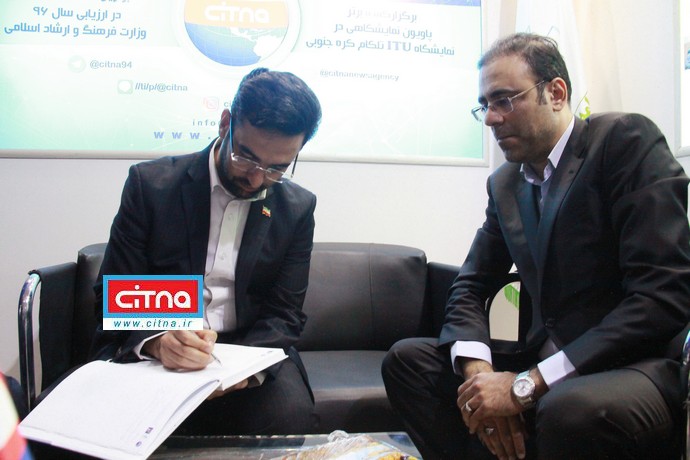 به گزارش سیتنا، مهندس آذری جهرمی، وزیر ارتباطات و فناوری اطلاعات که در نخستین روز برپایی نمایشگاه بین المللی ایران تلکام 2018 از شرکتهای مخابراتی و اپراتورهای حاضر در نمایشگاه بازدید می کرد، همراه با مهندس سید مجید صدری مدیرعامل شرکت مخابرات ایران در غرفهی مجموعه رسانه ای سیتنا در سالن 6 این نمایشگاه حضور یافت و دفتر یادبود سیتنا را امضاء کرد.