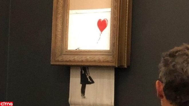 نقاشی مشهور بنکسی با عنوان «دختری با بادکنک» در رویدادی نادر پس از فروش، از دستگاه خردکن که در قاب نقاشی تعبیه شده بود، پایین آمد و پارههای آن پایین قاب آویزان شد.