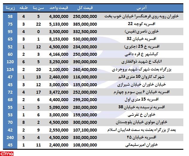 باشگاه خبرنگاران جوان: لیست آپارتمانهای موجود جهت خرید در منطقه ۱۵ تهران به شرح زیر است:
