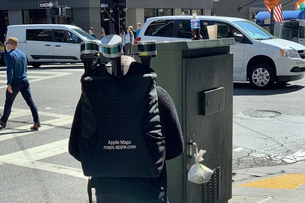 به تازگی عکس هایی از یک کارمند «نقشه اپل» منتشر شده که با یک کوله پشتی مجهز به چند دوربین، حسگرهای لیدار و تجهیزات در خیابان های سانفرانسیسکو تردد می کند. هنوز کاملا مشخص نیست دلیل این اقدام چیست اما احتمال دارد این فرد مشغول جمع آوری اطلاعات و جزئیات پیاده روها باشد.
