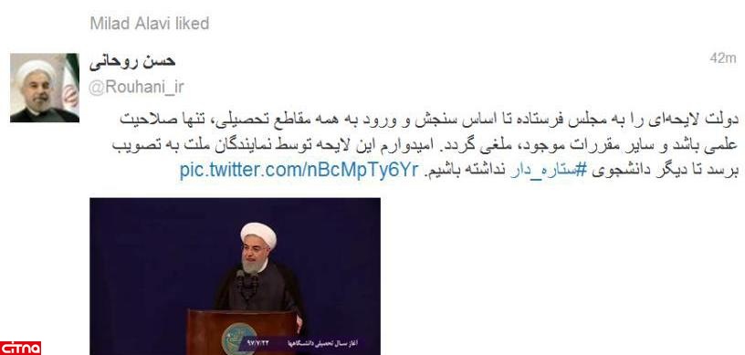 توییت رئیسجمهور درباره لایحه دولت برای حل مشکل دانشجویان ستارهدار