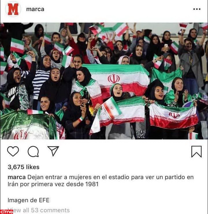 تصاویر اولین زنانی که نظارهگر بازی تیم ملی کشورشان بودند، از چشم رسانههای غیرایرانی هم دور نماند. نشریه اسپانیایی مارکا از جمله رسانههایی بود که در صفحه اینستاگرامش به این موضوع پرداخت و در توضیح تصویری از شور و شوق دختران حاضر در استادیوم، نوشت: بانوان هوادار برای اولین بار از سال ۱۹۸۱ (۱۳۶۰)، در ورزشگاه آزادی دیدار تیم ملی ایران مقابل بولیوی را تماشا کردند.