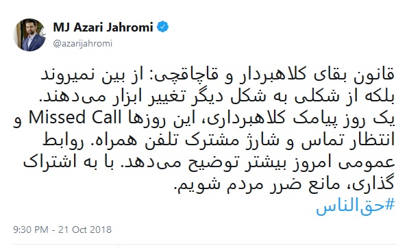 وزیر ارتباطات و فناوری اطلاعات، گفت: یک روز پیامک کلاهبرداری، این روزها Missed Call و انتظار تماس و شارژ مشترک تلفن همراه.
