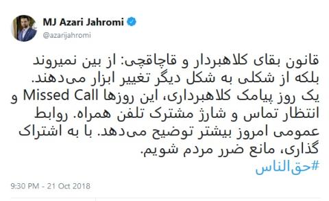 به گزارش سیتنا، مهندس آذری جهرمی توئیت کرد:
