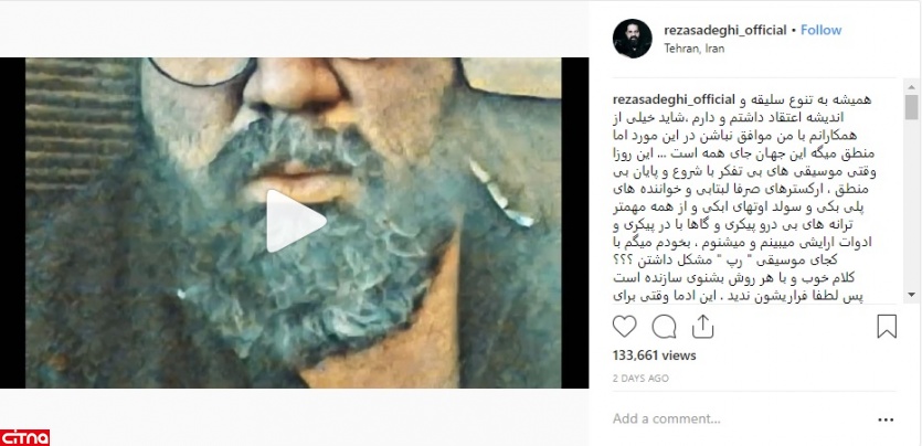 حمایت اینستاگرامی رضا صادقی از رپرهای ایرانی