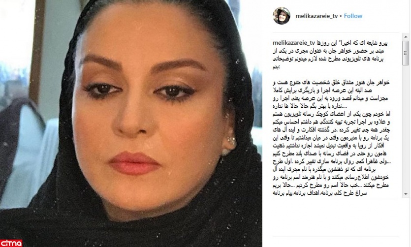 پست ملیکا زارعی در واکنش به خبر مجری شدن خواهرش