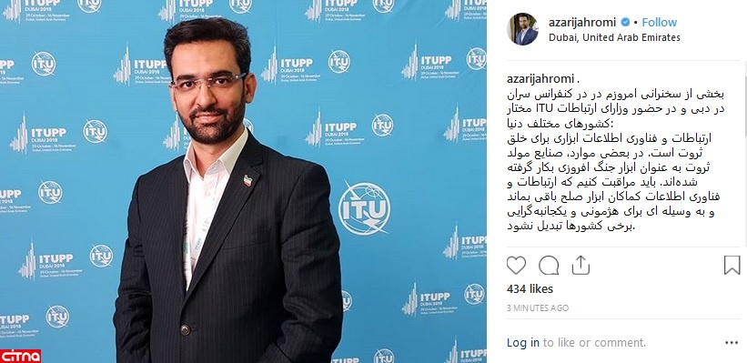 به گزارش سیتنا، مهندس آذری جهرمی در اینستاگرامش نوشت: