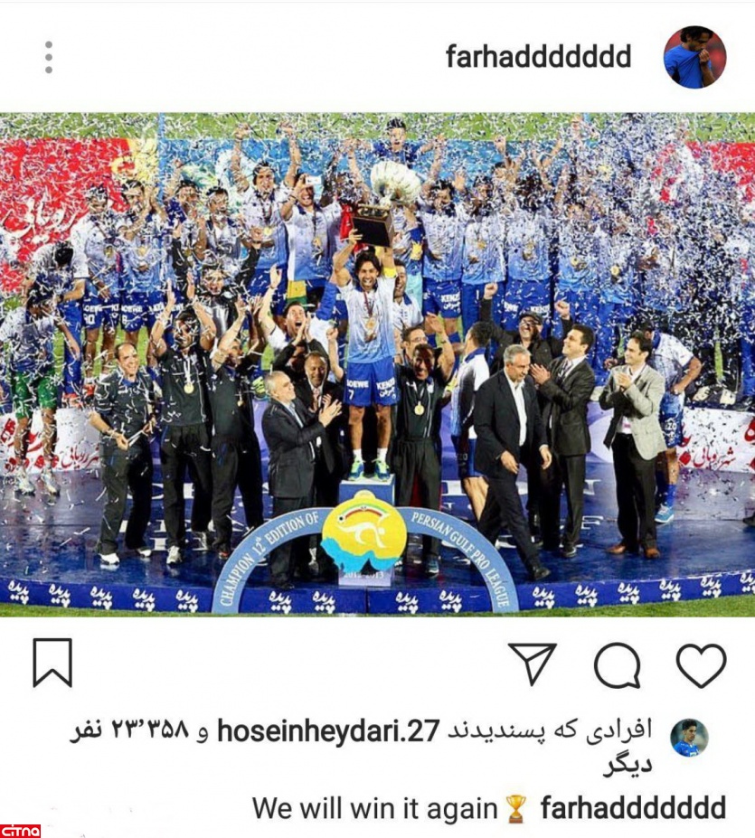 او با انتشار عکسی از جشن قهرمانی آبیها نوشت: «باز هم برنده خواهیم شد» تا شاید با این کار، هواداران استقلال را به یاد روزهای خوب گذشته بیندازد و آنها را نسبت به رسیدن روزهای خوب در آینده دلگرم کند.