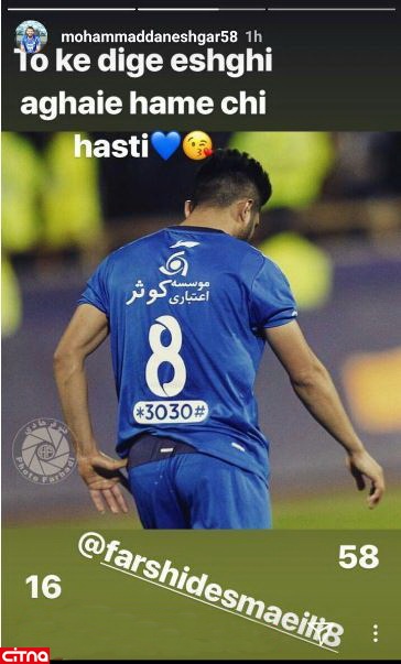 سپس سراغ فرشید اسماعیلی رفت و عکسی از او منتشر کرد و در کنار این عکس نوشت: «تو که دیگه عشقی، آقایی، همه چی هستی».