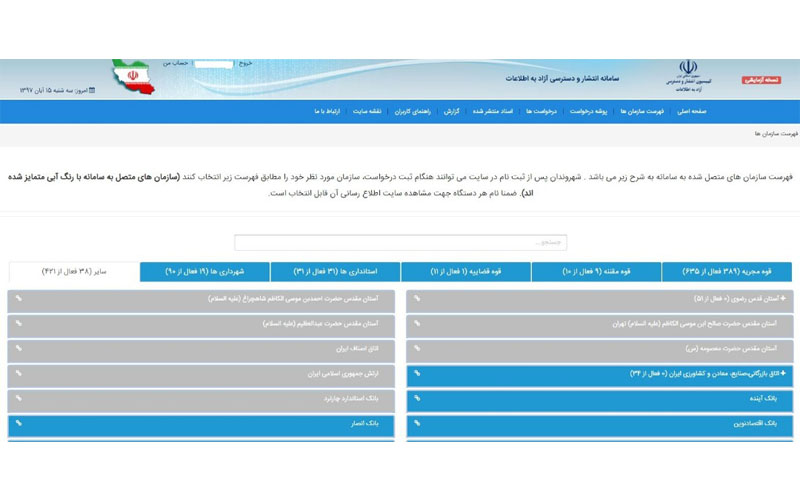 در سال 96 سامانهای اینترنتی از سوی وزارت فرهنگ و ارشاد اسلامی دولت تدبیر و امید ایجاد شد تا همه شهروندان بتوانند به اطلاعات طبقهبندی نشده دولتی، دسترسی داشته باشند.