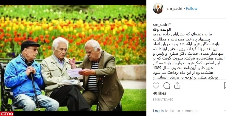 بنا بر وعدهای که پیشازاین داده بودم، پیشنهاد پرداخت معوقات و مطالبات بازنشستگان عزیز ارائه شد و به جریان افتاد.