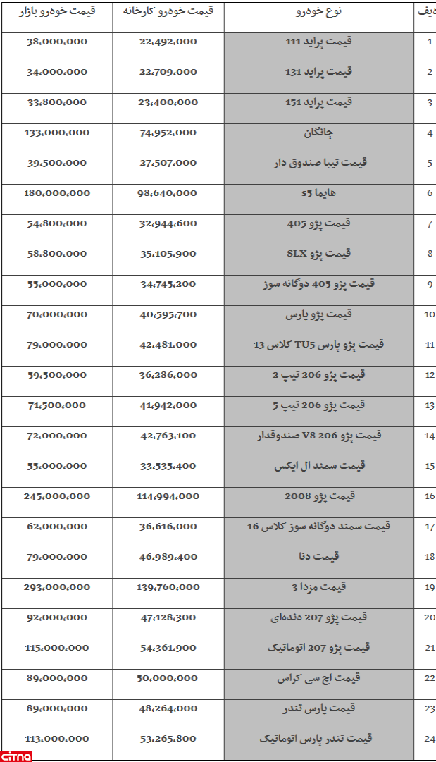 همچنین پژو206 تیپ 2 هم با قیمت 59 میلیون و 500 هزار تومان، پژو207 اتوماتیک با قیمت 115 میلیون تومان و پژو206 صندوقدار با قیمت 72 میلیون تومان مورد معامله قرار میگیرد.