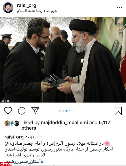 وزیر ارتباطات و فناوری اطلاعات، حکم خادمی حرم امام رضا (ع) را از تولیت آستان قدس رضوی دریافت کرد.