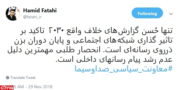 تنها حُسن گزارشهای خلاف واقع ۲۰۳۰ تاکید بر تاثیر گذاری شبکههای اجتماعی و پایان دوران بزن دَرروی رسانهای است. انحصار طلبی مهمترین دلیل عدم رشد پیام رسانهای داخلی است.