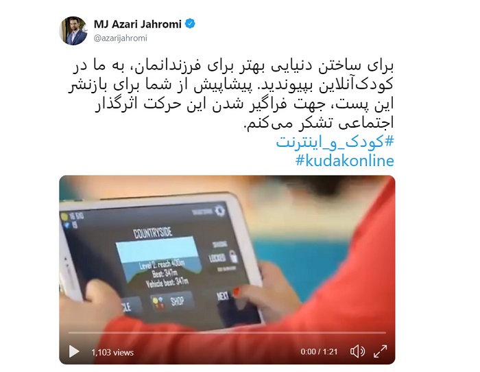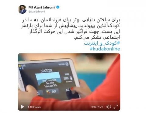 وزیر ارتباطات و فناوری اطلاعات، گفت: برای ساختن دنیایی بهتر برای فرزندانمان، به ما در کودکآنلاین بپیوندید.