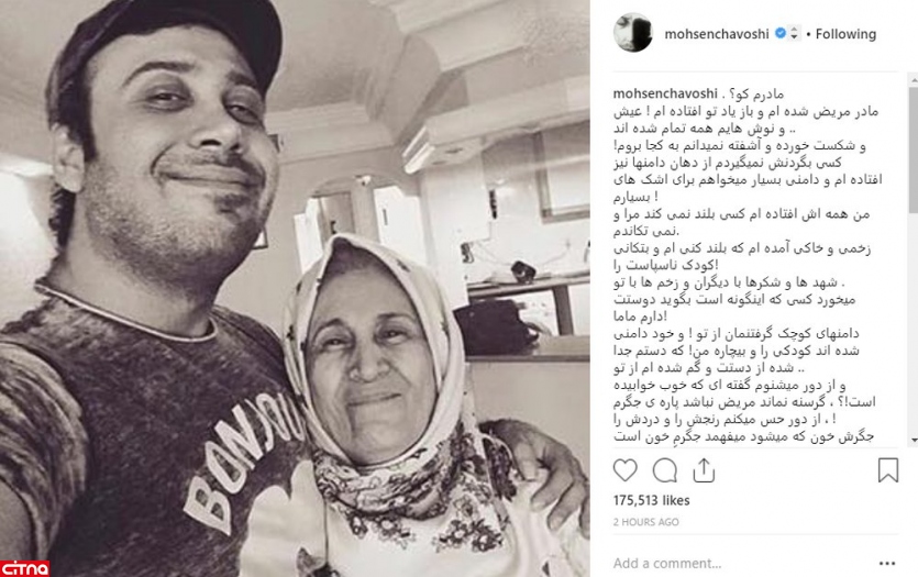 به گزارش سرویس وبگردی سیتنا، محسن چاوشی، تصویری از خود را کنار مادرش در اینستاگرام منتشر کرد.