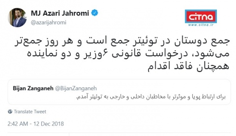 جمع دوستان در توئیتر جمع است و هر روز جمعتر میشود، درخواست قانونی ۶وزیر و دو نماینده همچنان فاقد اقدام.