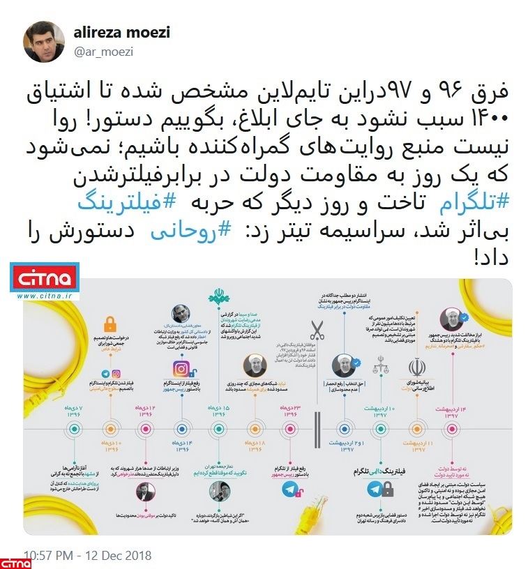 به گزارش سیتنا، «علیرضا معزی» دبیر شورای اطلاعرسانی دولت با انتشار این تایملاین، توئیت کرد: