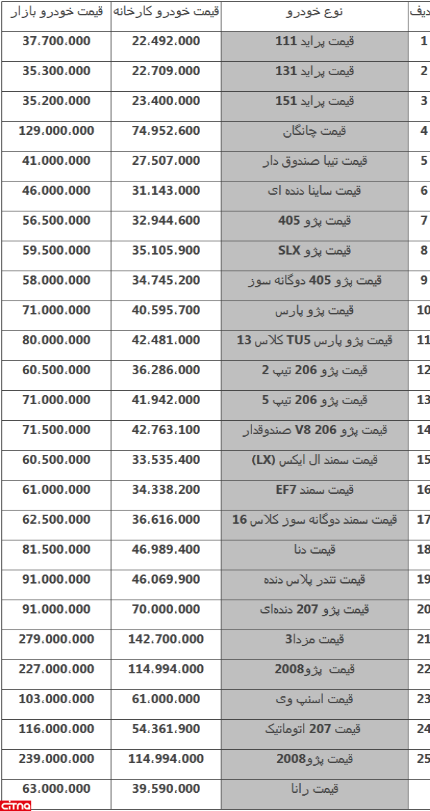 قیمت خودروهای داخلی در بازار امروز 1397/10/03 به شرح زیراست: