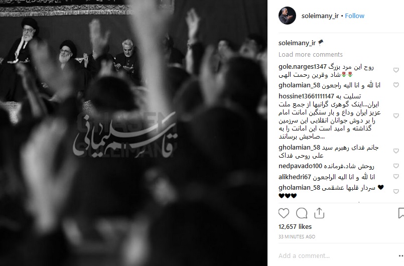 صفحهی اینستاگرام سردار سلیمانی به خبر درگذشت آیتالله هاشمی شاهرودی واکنش نشان داد.