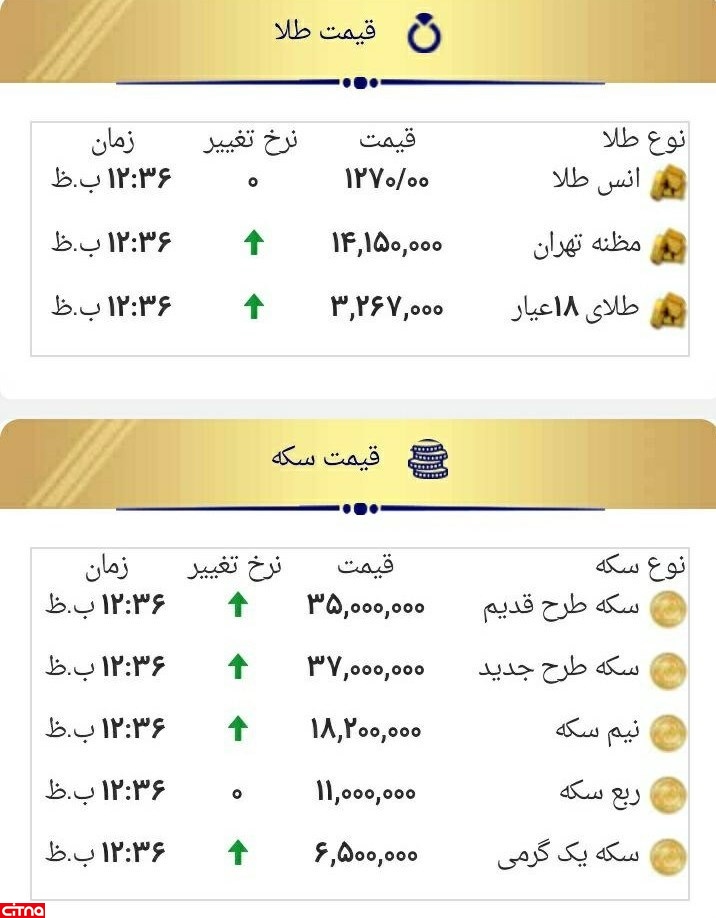 ** قیمت های درج شده برای انواع سکه و طلا از اتحادیه طلا و جواهر گرفته شده است.