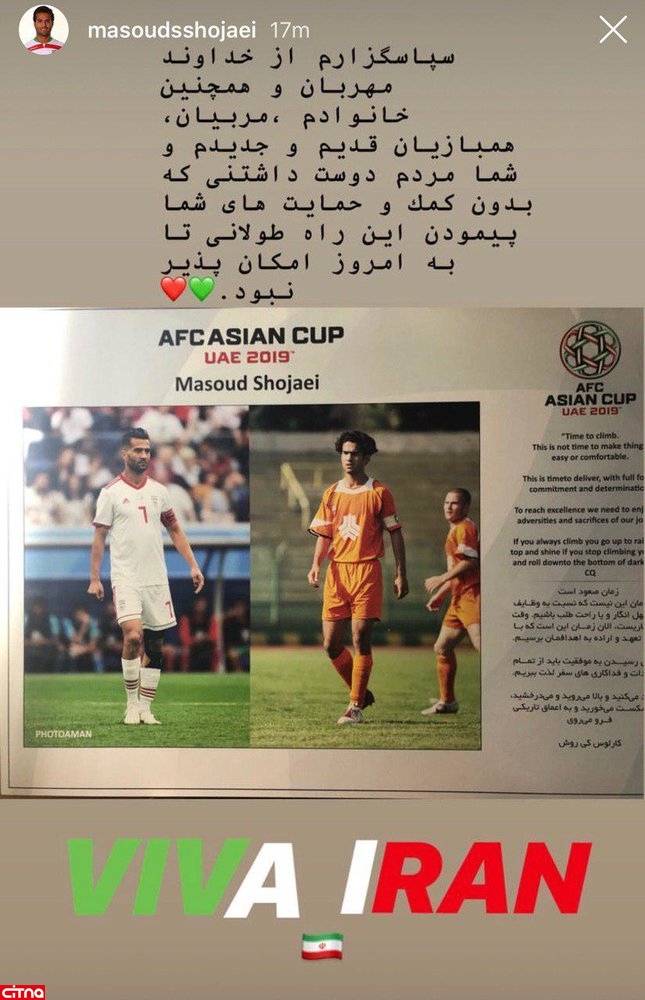 استوری تشکر مسعود شجاعی از مردم و سورپرایز کارلوس کیروش
