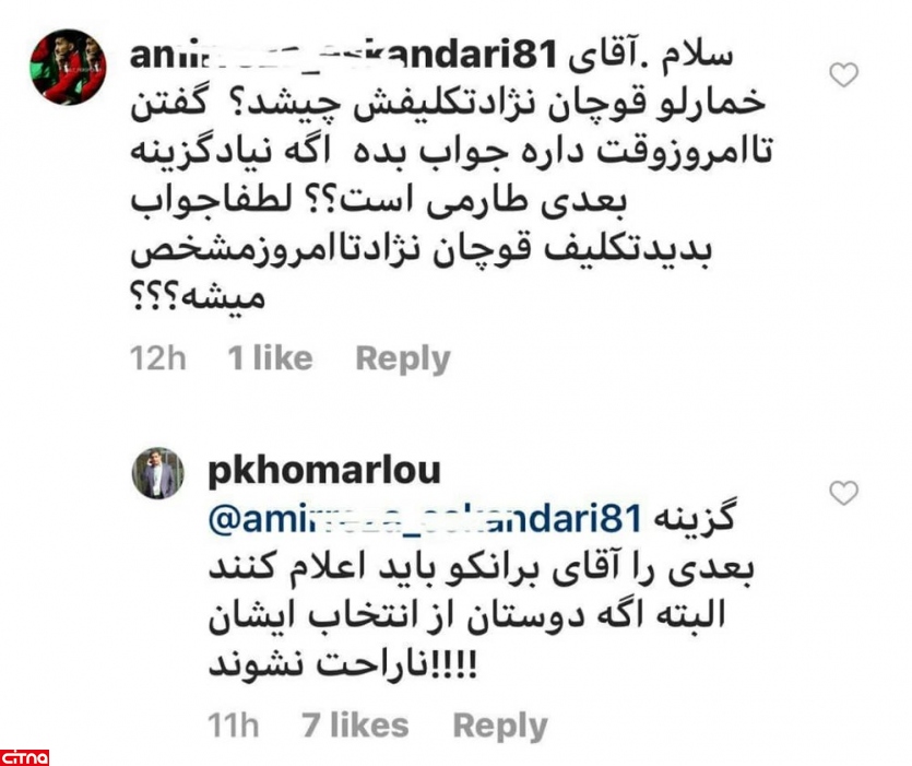 به گزارش سرویس ویگردی سیتنا، نوع پاسخ صفحه رسمی پندار خمارلو به پرسش یک هوادار در خصوص جذب مهاجم می تواند نشان دهنده آن باشد که گزینه بعدی برانکو مهاجمی است که اخیرا برانکو درباره جذب او حرف هایی زده بود. گزینه ای که خمارلو از او اینگونه یاد می کند: «اگر برخی ناراحت نشوند».