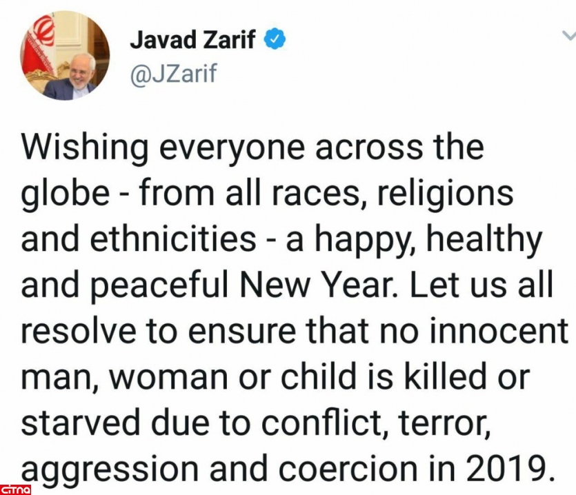 وزیر امور خارجه کشورمان با انتشار توییتی فرار رسیدن سال جدید میلادی را تبریک گفت.