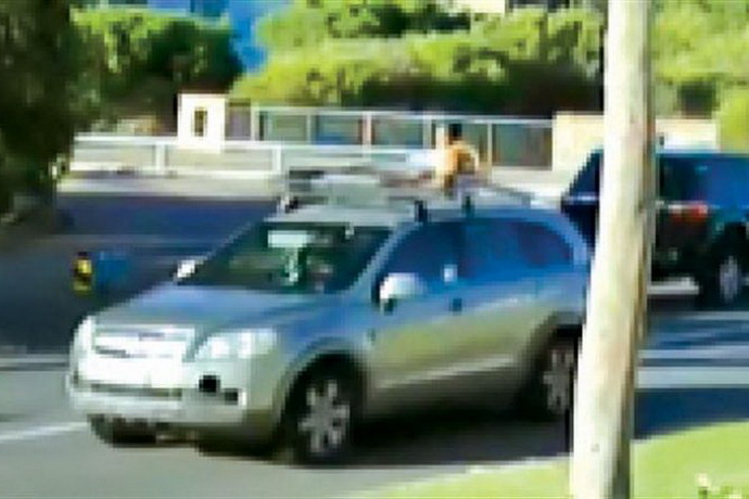 دوربینهای مداربسته تصویر کودک پوشکشدهای را که روی سقف یک خودروی در حال حرکت بود نشان دادند و این تصویر به سرعت در فضای مجازی منتشر شد.