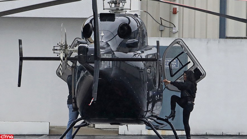 زن 49 ساله ای که این روزهابه دلیل رابطه عاشقانه با ثروتمندترین مرد جهان در کانون توجه رسانه ها قرار داد با هلی کوپتر در سانتا مونیکا ایالت کالیفرنیا دیده شد.