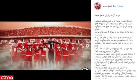 سیدجلال حسینی در واکنش به ادعاهای کارلوس کی روش در اینستاگرامش نوشت: درصد دریافتی بازیکنان پرسپولیس با کدام یک از تیم های لیگ برتری و یا دروغ گویان یکی است؟