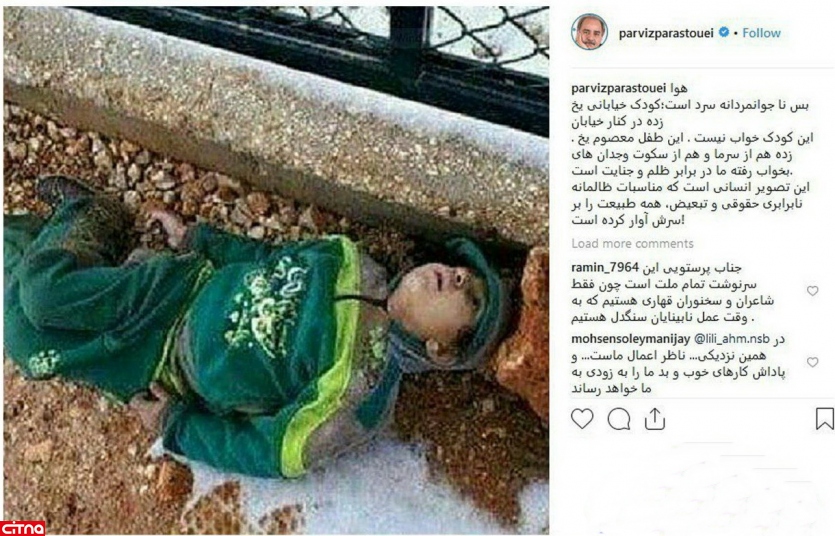 سوتی عجیب پرویز پرستویی در انتشار عکس جسد یک کودک