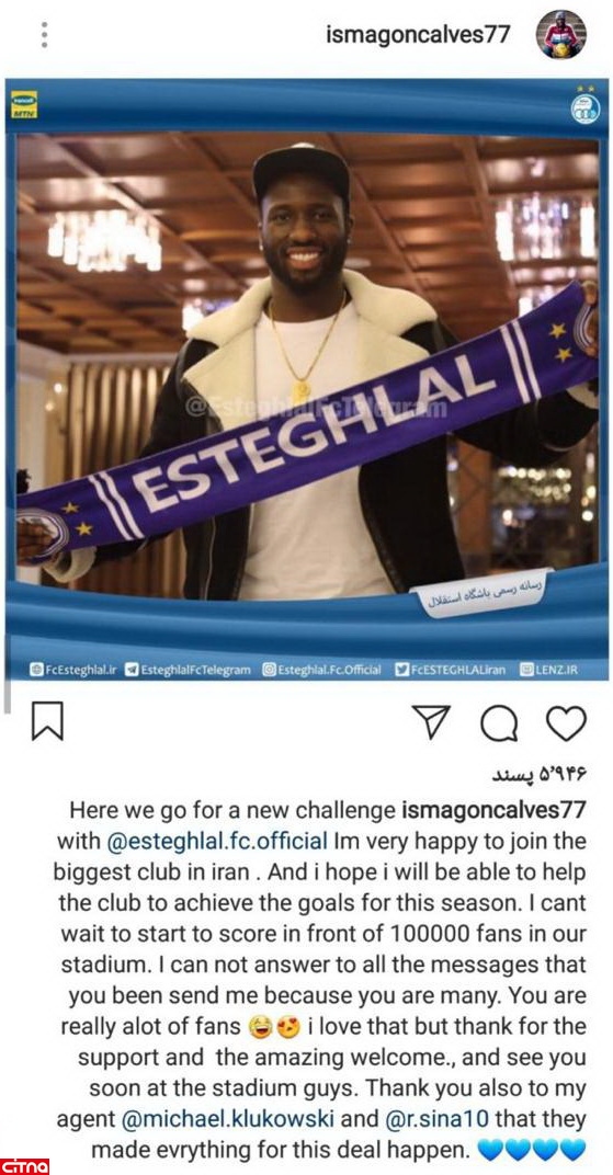 به گزارش سرویس وبگردی سیتنا، اسماعیل گونکالوس پس از پیوستن به استقلال با انتشار تصویری در صفحه اینستاگرامش نوشت: