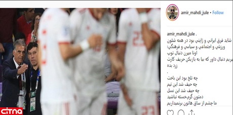 پست جالب امیر مهدی ژوله در واکنش به باخت ایران مقابل ژاپن