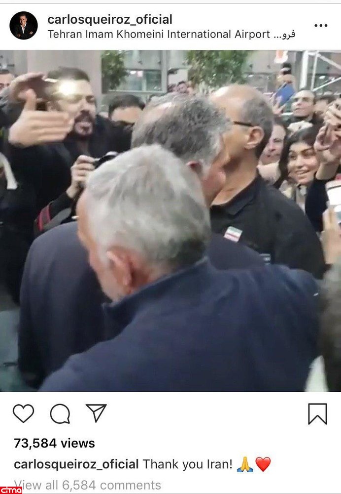 کارلوس کیروش با انتشار فیلمی در صفحه اینستاگرام خودش از مردم ایران تشکر کرد.