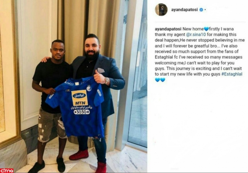 به گزارش سرویس وبگردی سیتنا، آیاندا پاتوسی مهاجم جدید استقلال که سابقه پوشیدن پیراهن تیم ملی آفریقای جنوبی را دارد، حالا در تهران است. او مشکلاتی برای عقد قرارداد با استقلال داشت اما مسئولان این باشگاه خیلی سریع شرایط را فراهم کردند تا مهاجم آفریقایی در زمستان به استقلال بیاید. او پس از نهایی شدن انتقالش به استقلال در اینستاگرام خود نوشت: